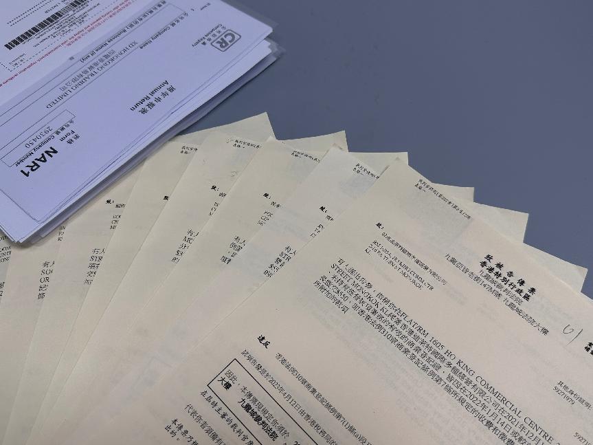 1.如果香港公司以郵寄的方式提交周年申報表,確認注冊處處長收申報文件以處長實際實收文件為準。