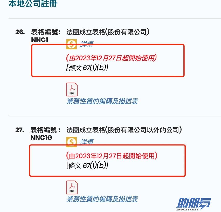 在實(shí)施日期(2023年10月27日)后的四個(gè)星期后,即2024年1月25日起,香港注冊(cè)處不再按受以下表格: